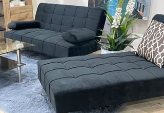 Sofá cama de terciopelo en color negro, a estrenar. - Diseño moderno y elegante. - Acolchado confortable. - Patas metálicas plateadas.
