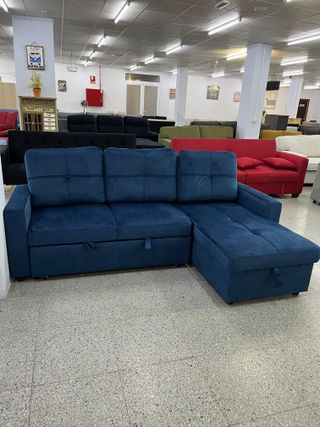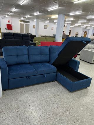 Nuevo sofa cama de terciopelo azul con chaislongue y arcon Hacemos envios a domicilio Pago contra reembolso