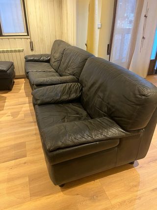 Sofá de dos plazas y otro de tres plazas ,con un diseño moderno y elegante. En perfecto estado. - Tapicería de piel. - Color negro intenso. - Estructura robusta y cómoda. A recoger en domicilio