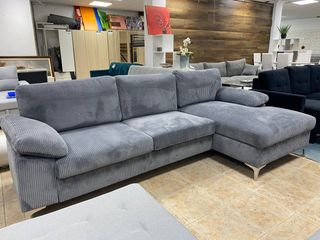 Sofá chaise longue de 3 plazas en color gris. Su diseño moderno y el material de pana le dan un toque acogedor a cualquier sala. - Tapicería de pana. - Estructura de 3 plazas. - Chaise longue. - Patas metálicas. 📲 Llama ahora: 643*189*083 💸Pagas al recibir 🚚💨 Envíos disponibles 🛠️ Montaje disponible 🏡⬆️ Te lo subimos hasta tu casa Compra segura, rápida y sin complicaciones. ¡Aprovecha antes de que se agote!