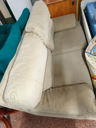Se venden dos sofás de tela color beige. Urge retirada por cambio. Tienen uso pero la estructura es sólida. Transporte a cargo del comprador - set de 2 sofas (pequeño de 2 plazas, grande de 3 plazas) - recogida en Abando (Bilbao)