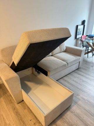 Cómodo sofá chaise longue con un diseño moderno y elegante. Perfecto para tu salón. Solo 9 meses de uso - Tapicería de tela. - Color neutro fácil de combinar. - Chaise longue reversible con almacenamiento