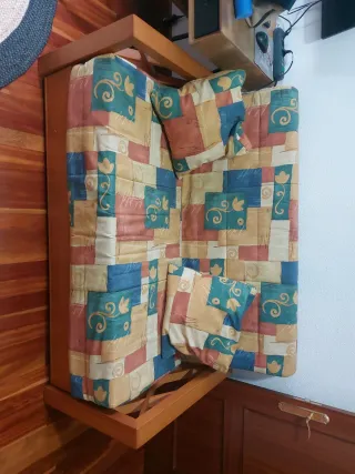 Elegante sofá antiguo con detalles tallados a mano. Su diseño clásico aporta un toque de distinción a cualquier espacio. - Estructura de madera robusta. - Tapicería de tela con un delicado estampado. - Respaldo y asiento curvos para mayor comodidad. Se vende sofá antiguo de madera maciza, con respaldo tallado y tapizado clásico. Pieza decorativa con encanto, ideal para recibidor, salón, casa de pueblo, atrezzo o decoración vintage. Estructura firme. Tapizado con desgaste normal del paso del tiempo. 📍 Recogida Orozko en mano por tamaño y peso. 💰 Precio: 90 € (negociable si recogida rápida).