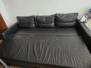 Sofa de piel negro con uso pero en buen estado. Se sacan hacia fuera todos los sillones y se hace cama.