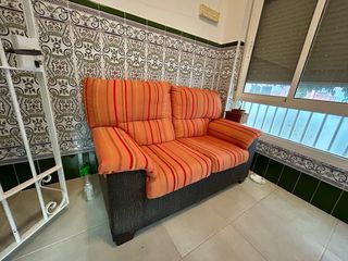 Sofá de dos plazas en buen estado. Su diseño es clásico y se adapta a cualquier estancia. - Tapicería de tela. - Color beige con un discreto estampado floral. - tiene desgaste en la parte superior tal como se ve en las fotos - no tiene manchas, nada roto Se puede recoger en Cádiz o lo puedo enviar con wallapop (gastos al comprador)