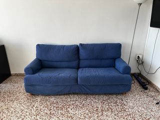 Cómodo sofá de tela en un bonito color azul. EN PERFECTAS CONDICIONES - Diseño moderno y elegante. - Tapicería suave al tacto. Tenemos 2 iguales: 1 unidad (300 €) y los 2 (500 €)
