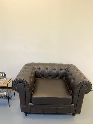 Elegante sofá Chester de tres plazas con un diseño clásico y atemporal. Aporta un toque de distinción a cualquier salón. - Tapicería de Poli piel . - Acabado capitoné. - Estructura robusta. Se escucha oferta serias También se pueden vender por separados. Pequeños 225€ unidad Grande 400€