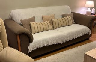 Sofá de 3 plazas beige y marrón