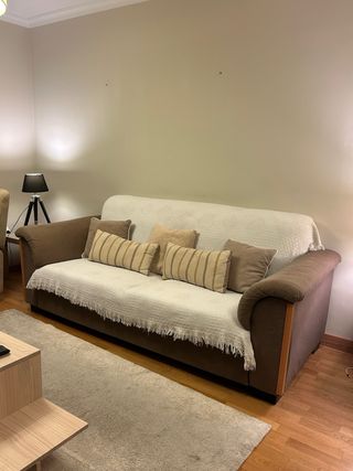 Sofá cama en perfecto estado, usado solo una vez. Es muy cómodo y elegante. - Diseño moderno. - Tapizado en tela. - Color neutro fácil de combinar.