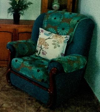 Butaca vintage tela y madera, una 10€ las dos 16€.