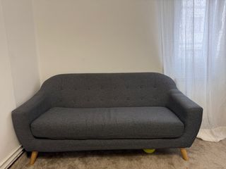 Cómodo juego de sofá. 1 de 2 metros - Diseño moderno y elegante. - Tapicería de tela suave al tacto. - Tonos azules que combinan fácilmente. - contamos con transporte si te hace falta pregunta sin compromiso