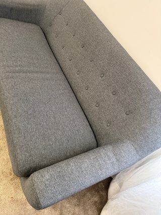 Sofá de dos plazas con un diseño moderno y confortable. Sus dimensiones lo hacen ideal para salones de tamaño medio. - Largo: 2,05 metros - Fondo: 0,75 metros A ser recogido y transportado por el comprador