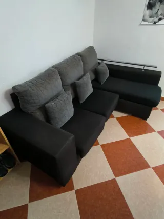 Sofá chaislongue de 3 plazas en color antracita. Se vende por mudanza. - Tapicería de tela antimanchas. - Diseño moderno y confortable.