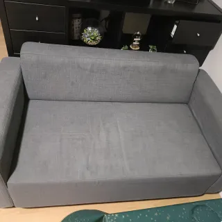 Sofá de dos plazas con un diseño moderno y cómodo. Está en perfectas condiciones aunque se ve un poco sucio en la foto es porque está guardado en un local y se ensucia de estar ahí pero eso se limpia y está nuevo. Escucho ofertas (Las medidas que he puesto son una aproximación ya que no lo he medido y me pedía que pusiera algo)