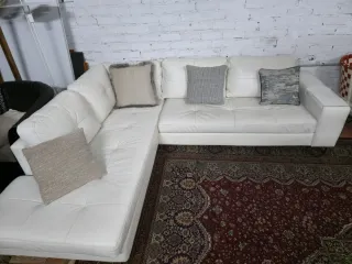 Sofá Seccional Blanco Cuero y Tela