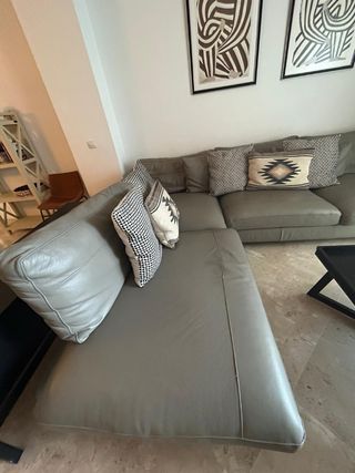 Vendo sofá chaise longue comprado hace solo 3 meses (demostrable). Lo vendo únicamente porque me han regalado otro de un tamaño superior. Características TOP: Estado: Estructura, espumas y mecanismos impecables (solo 90 días de uso). Asientos deslizantes: Se extraen para mayor comodidad, casi como una cama. Puffs laterales: Incluye dos taburetes/puffs integrados en el brazo, ideales para visitas. Regalo: Entrego funda extra de repuesto para la parte de los asientos. Nota sobre el estado: Tiene una mancha en la parte del chaise longue. Por eso, lo vendo un poco más barato. Con una limpieza de espuma o una vaporetq queda impecable.