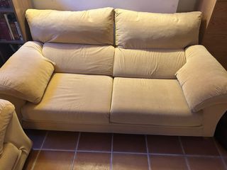 Se venden sofás de 3 y 2 plazas. -Buenisima estructura.Desenfundable. - Tapicería de tela. - Color beige. Es algo negociable.No se hacen envios.Se recoge en domicilio practicamente a pie de calle
