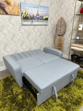 Sofá cama compacto y elegante, con sistema de arrastre y elevación. Incluye 2 cojines. Medidas: Largo 132 cm, Ancho 92 cm, Alto 85 cm, Cama 193x113 cm. Color único. 📢FINANCIAMOS SU COMPRA ✅NUEVO CON GARANTÍA DE 3 AÑOS. ✅ENVIOS A DOMICILIO ✅PAGO CONTRAREEMBOLSO 📲+ INFO 659630249 (LLAMADA O WHATSAPP)