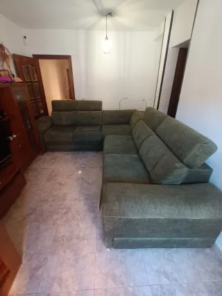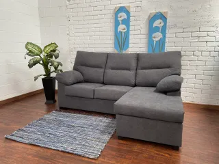 Se vende sofá chaise longue en color gris, muy cómodo y espacioso. Perfecto para salón grande o para quien quiera un sofá donde tumbarse a ver pelis o descansar. Tiene asientos amplios y respaldo alto, lo que lo hace muy cómodo. El chaise longue permite estirarse completamente. El sofá está en buen estado general, tal y como se ve en las fotos. Es muy resistente y el color gris combina fácilmente con cualquier decoración. Ideal para piso, salón familiar o segunda vivienda.