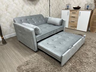Sofá convertible en cama matrimonial de manera rápida y sencilla. Incluye 2 cojines. *Medidas: Alto 90 cm, Largo 161 cm, Ancho 86,5 cm, Cama 191x134 cm. *Color gris tapizado en terciopelo (Color único) 📢FINANCIAMOS SU COMPRA ✅NUEVO CON GARANTÍA DE 3 AÑOS. ✅ENVIOS A DOMICILIO ✅PAGO CONTRAREEMBOLSO 📲+ INFO 659630249