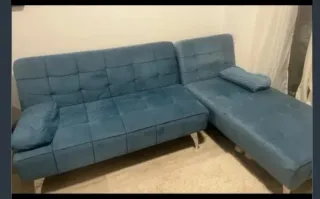 Sofá cama azul de tela