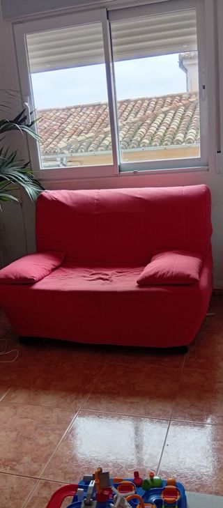 Sofá cama en muy buen estado, excepto por la funda que tiene algunas obras de arte de mi hijo que no pudimos quitar. Pero lo usamos con una manta encima y ya está. Al desplegarse es una cama de 110*190. Medidas en una de las fotos.