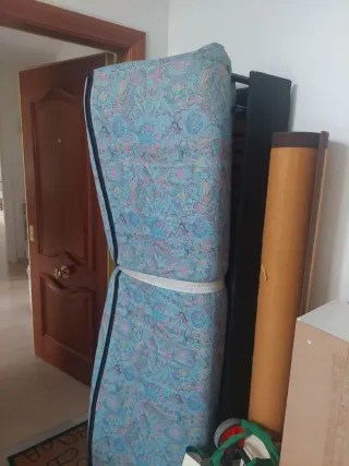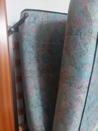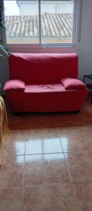 Sofá cama con colchón de espuma MUY cómodo. 135cm (abierto) x 85cm. No tiene la tapicería rota, estructura en buenas condiciones, cama muy cómoda. Urge por reforma. Tendrían que recogerlo cuanto antes. Hay escaleras en el domicilio. - Tapicería de tela. - Estructura de madera.