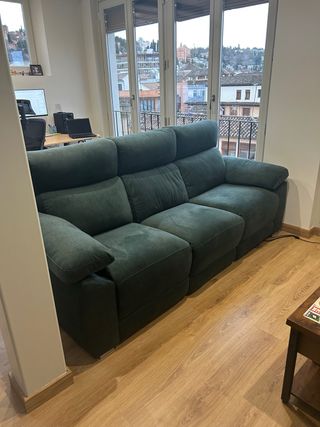 Sofá de tres plazas individualmente motorizadas para ofrecer comodidad a cada persona sentada. 2,20 metros de largo y puede venir a verlo por el centro de Granada cuando quiera.