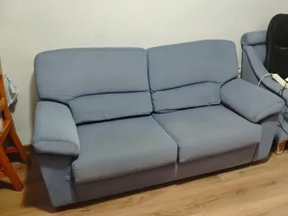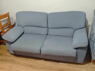Sofá de dos plazas en buen estado. Su diseño moderno y su tejido lo hacen ideal para cualquier salón. - Tapicería de tela. - Color azul. SE REGALA. No se vende si se recoge antes del 11/02/2026.