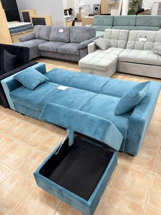 Magnifica opción si deseas un sofá chaise longue multifuncional. Convertible en cama con sistema de arrastre y con arcón en la parte del chaise. > Medida: 216x134cm > Tapizados: terciopelo, tela *3 AÑOS DE GARANTIA. *ENVIO A DOMICILIO (CONSULTAR PORTE) *PAGO AL MOMENTO DE LA ENTREGA.