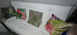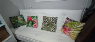 Excelente Estado ⚜️ Sofá de 2 plazas muy cómodo en estado impecable, casi sin uso como puede verse en foto Se desenfunda por completo de forma rápida y fácil mediante cremalleras traseras Tela de calidad tipo loneta gruesa y resistente. Se puede meter en lavadora. Medidas aprox: Largo 1,50 m · Alto 90 cm (con patas·) Fondo 80 cm Cojines: 54 x 54 cm aprox Combina con casi cualquier estilo Ideal salones pequeños, apartamentos, habitación, estudio, alquileres, segunda residencia, habitación infantil... Recoger en Huelva Capital