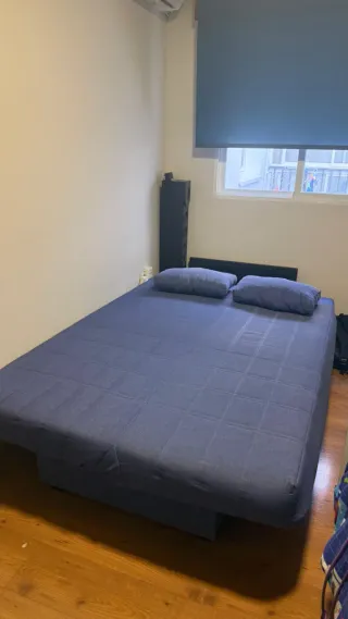 Sofá cama de diseño italiano con un colchón de 140x190cm y 15cm de grosor. Está completamente nuevo, me equivoqué en la medida y queda muy justo en mi salon. - Tapicería de tela efecto pana gruesa - Color beige.