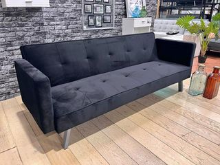 Sofá cama de terciopelo, ideal para espacios reducidos. Se despliega fácilmente para convertirse en una cama de matrimonio. - Ancho de cama: 138 cm. - Diseño moderno y elegante. * Envío a domicilio (consulta tarifa según zona) * Pago contra reembolso #SofaCama #SofaMatrimonial #OfertaMuebles