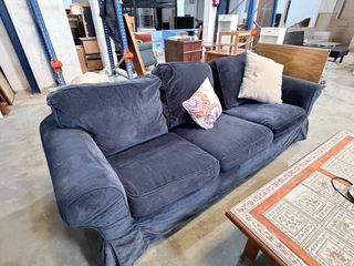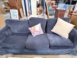 Sofá de tres plazas muy cómodo y amplio. Tapizado en color azul oscuro, suave al tacto y fácil de combinar. 📌 Estado: segunda mano, en buen estado general, con uso normal.