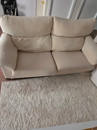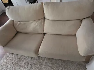Cómodo sofá de dos plazas. Atención!! Para recoger entre hoy Sábado y hasta el lunes. Después se lo llevarán. Recogida en Pérez Galdos en Logroño. Desenfundable y lavable. Usado pero aun le queda mucha vida. - Tapicería de tela. - Color beige neutro.