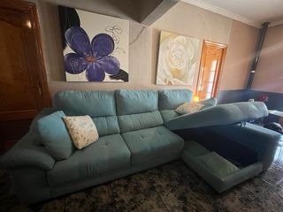 Sofá Chaise Longue Turquesa Extraible y con arcon