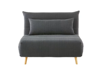 Sofá cama de tela en color gris, ideal para espacios reducidos. Se transforma fácilmente en cama. medidas en la descripción. - Diseño moderno y funcional. - Cojín alargado incluido.