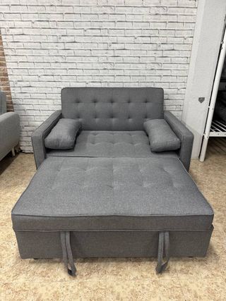Sofá de dos plazas que se convierte fácilmente en cama. Ideal para espacios reducidos. - Tapicería de tela. - Estructura metálica. - Color gris y negro.
