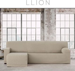 Funda para sofá Eysa Llion, modelo Lycra en color Visón. Diseñada para brazo izquierdo. - Tejido elástico y adaptable. - Tacto suave y agradable.
