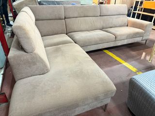 Sofá rinconera en perfecto estado, casi sin uso. Ideal para tu salón. - Tapicería de tela. - Color beige neutro. - Diseño moderno y confortable. - Posibilidad de entrega.
