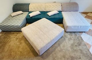 Este sofá modular de 5 piezas ofrece gran versatilidad para tu sala de estar. Su diseño moderno y las diferentes combinaciones de colores lo hacen destacar. - Compuesto por 5 módulos independientes. - Tapicería de tela. - Incluye cojines decorativos. Es una sofa de disegno unico . Nuevo questa 4600 euros No hago envios . Transporte alrededor de Marbella 100 euros