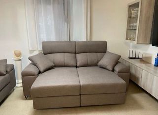 Conjunto de sofás de tela en color gris, completamente nuevos, se venden por equivocación en el color En los brazos de los sofás tiene un espacio muy amplio para guardar muchas cosas Se abren completamente todos los departamentos de cada sofá hasta convertirse en una cama muy grande Se pueden vender por separado o juntos, para la venta de los dos juntos se ajustaría el precio - Diseño moderno y confortable. - Patas metálicas resistentes El precio marcado es para cada uno, no los dos juntos, el precio es negociable Están en Cehegín