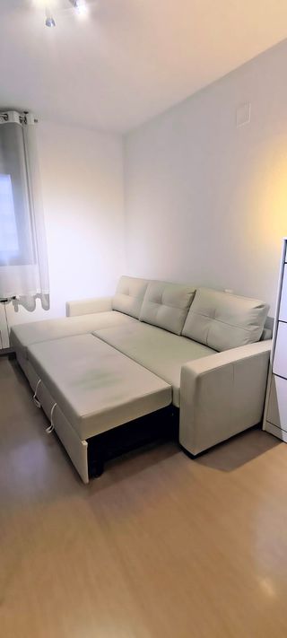 Prácticamente nuevo, se extienden las zonas de las piernas con unos botones en el sofa,no se hace cama. Está desmontada,se puede transportar en una furgoneta pequeña