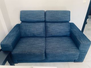 Sofá de dos plazas en buen estado. Su diseño moderno y su tamaño lo hacen ideal para cualquier salón. - Mide 2 metros de largo. - Tapizado en tela de alta calidad.
