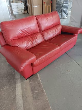 Sofá de piel en color rojo. Está en buen estado y listo para un nuevo hogar. - Tres plazas - Diseño clásico elegante - Tapicería de piel lisa - Mide 220x110.