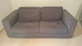 Sofá de dos plazas con un diseño moderno y cómodo. Tapizado en tela. - Dos cojines grandes. - Estructura robusta. Lo regalo a quien lo venga a buscar, está en Tarragona ciudad en un cuarto piso sin ascensor.