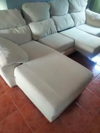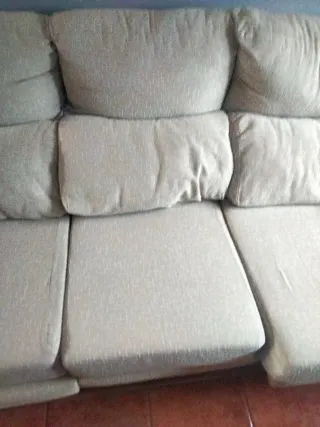 Se vende chaiselongue con sofá de tres plazas 200€ y sofá de tres plazas 150€. Si te lo llevas todo 300€ Transporte no incluido. - Tapicería de tela. - Color beige.