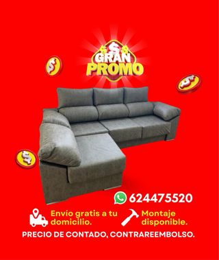 ✨SOFÁS A PRECIOS DE LOCOS✨ ⚜️SOFÁ CHAISELONGUE MODELO PARIS🗼⚜️400 -CARACTERÍSTICAS: • Armazón de pino gallego y cistados de tableros de partículas. •Suspensión cinchas elásticas. •Respaldos y cojines mezcla. •Asiento goma 25 kg. suave. •Respaldos reclinables. • Asientos deslizantes. •Tela Antimanchas. •Medidas 265x90. -COLORES: ➖Cemento ➖Negro ➖Piedra 🚛 Transporte gratuito a domicilio en toda valencia murcia alicante 🚛 ♾️Envío en 2-3 días hábiles ♾️ ✨pagas contra reembolso una vez lo recibes✨ -No dudes en pedir más fotos. 📕disponemos de catálogo 📕