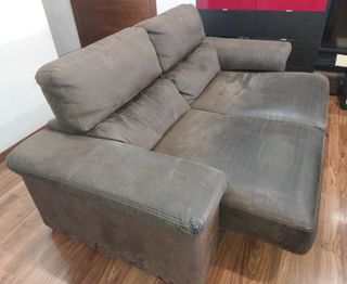 --- No envío --- Sofá de tres plazas con asientos extraíble . Medidas de 210 largo 98 ancho y 90 alto. - Tapicería de tela efecto ante. - Reposacabezas vencido no se queda fijo, por el resto está muy cuidado.