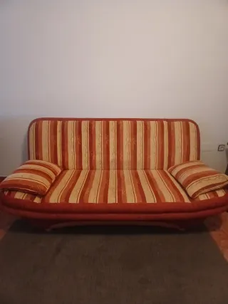 Sofá-cama en perfecto estado, casi nuevo. - Tapicería de tela. - Cojines decorativos incluidos.